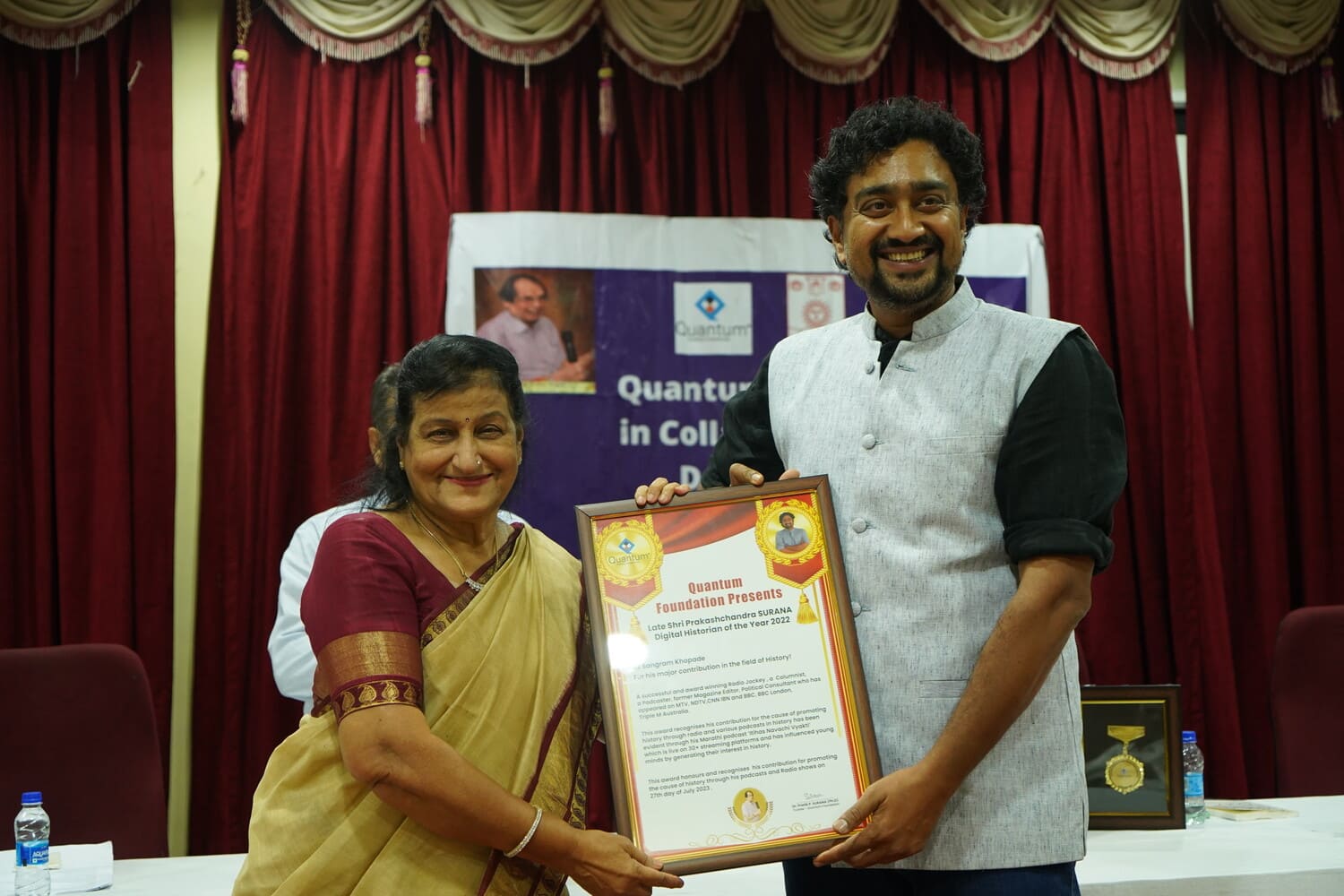 𝗤𝘂𝗮𝗻𝘁𝘂𝗺 𝗙𝗼𝘂𝗻𝗱𝗮𝘁𝗶𝗼𝗻 has recently felicitated two distinguished historians, 𝗗𝗿. 𝗚.𝗕.𝗗𝗲𝗴𝗹𝘂𝗿𝗸𝗮𝗿 𝗮𝗻𝗱 𝗥𝗝 𝗦𝗮𝗻𝗴𝗿𝗮𝗺 for their extraordinary achievements in the field of history with the 2𝙣𝙙 𝙇𝙖𝙩𝙚 𝙎𝙝𝙧𝙞 𝙋𝙧𝙖𝙠𝙖𝙨𝙝𝙘𝙝𝙖𝙣𝙙𝙧𝙖 𝙎𝙐𝙍𝘼𝙉𝘼 𝙃𝙞𝙨𝙩𝙤𝙧𝙞𝙖𝙣 𝘼𝙬𝙖𝙧𝙙𝙨! - 2023 Awards Responsive Image